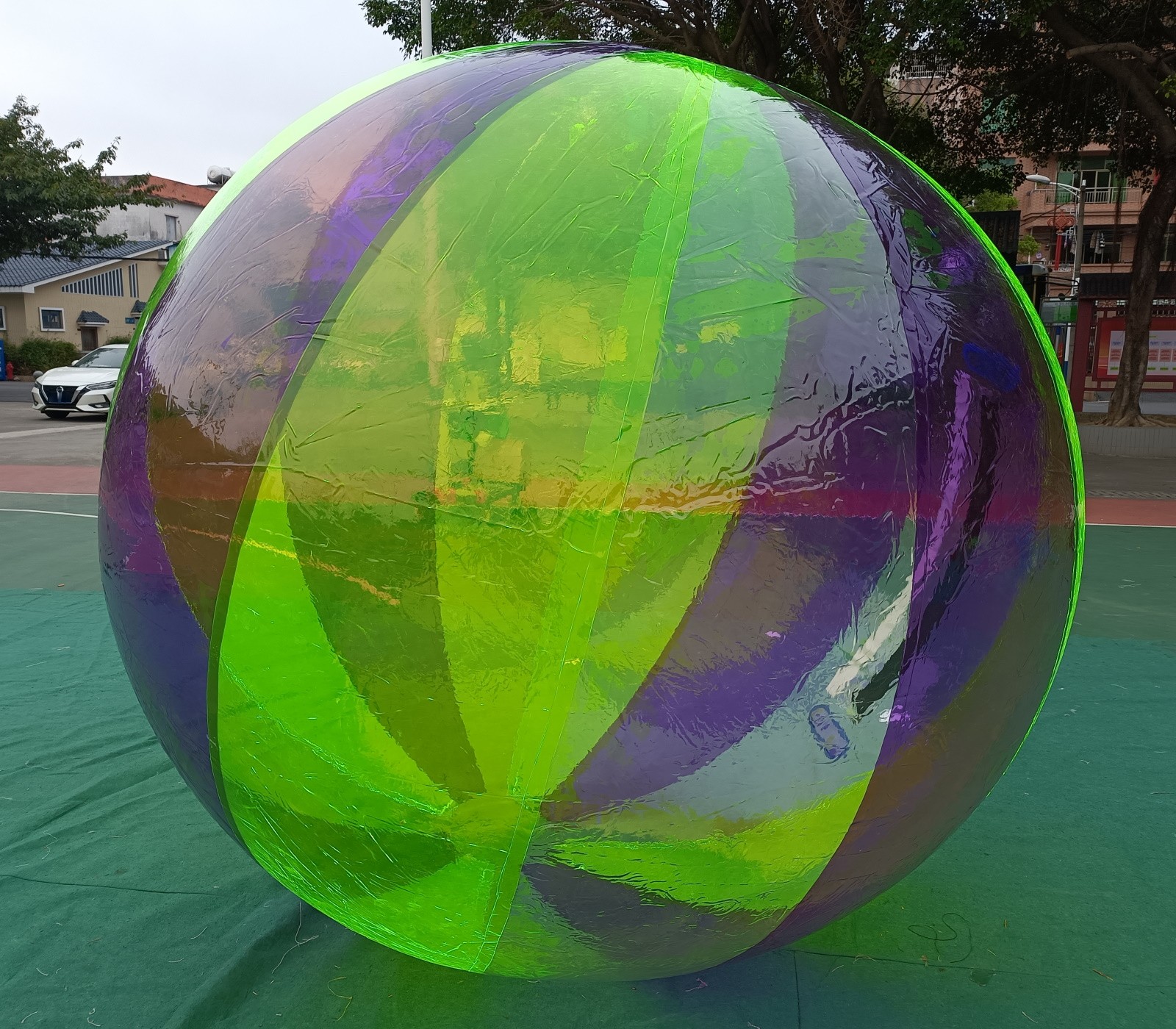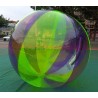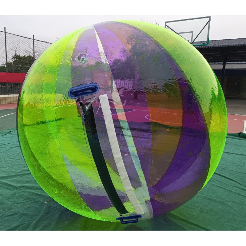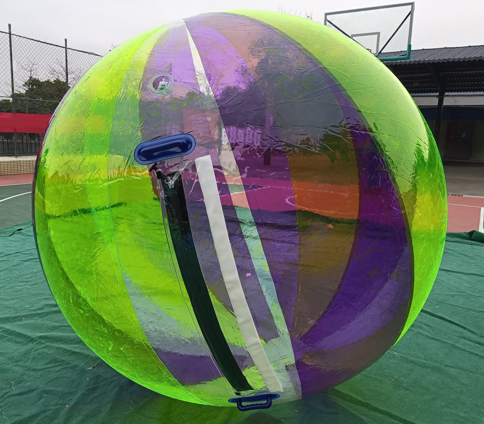 Water Ball de 2 metros de diámetro amarillo, morado y transparente.