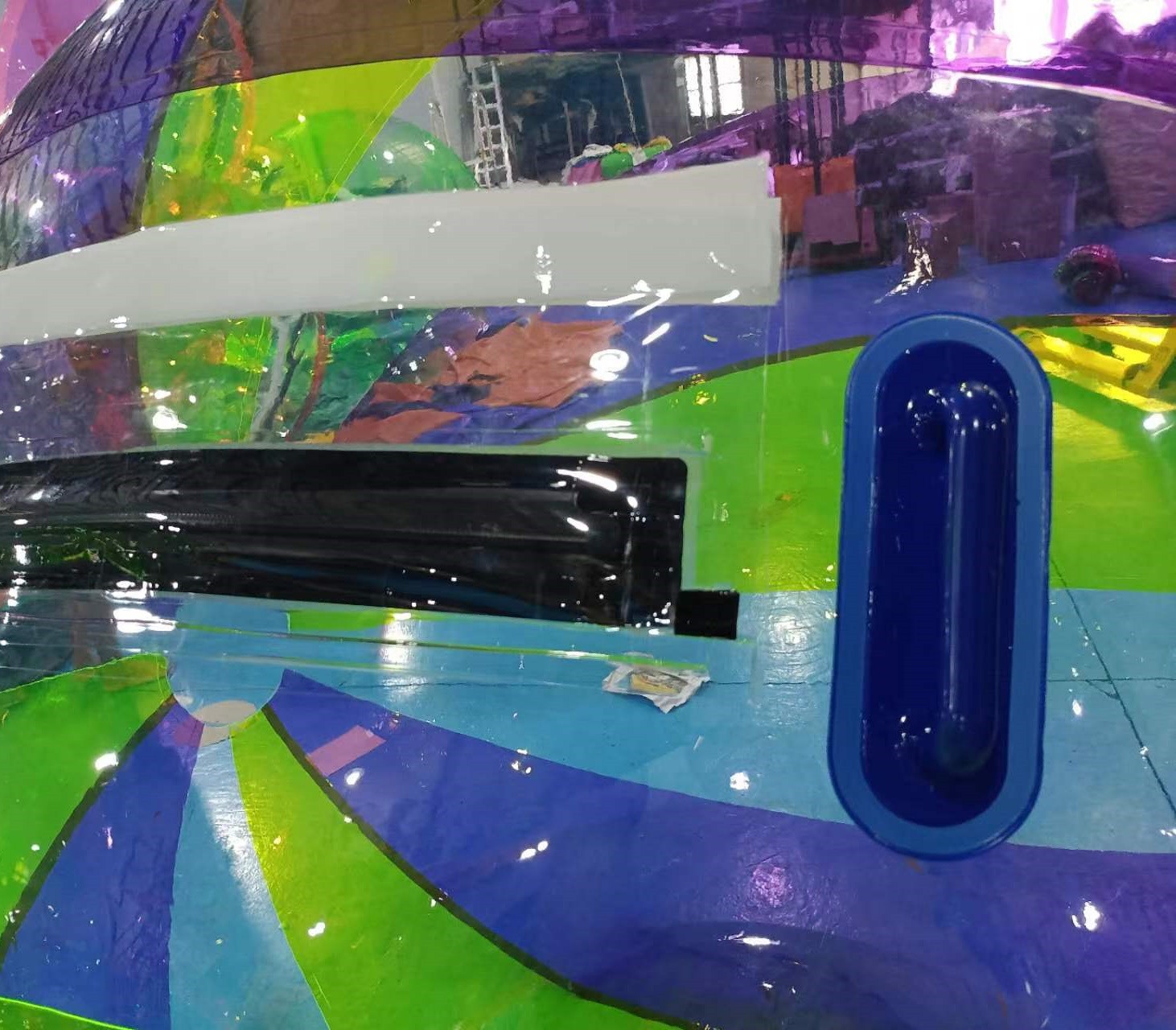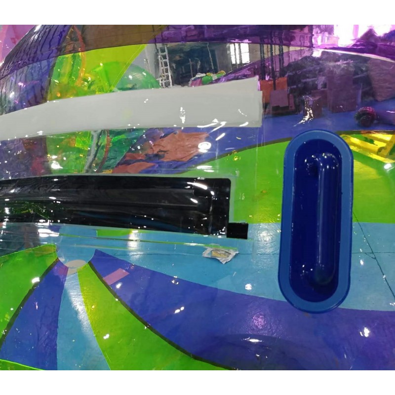 La Water Ball es una esfera inflable hermética fabricada con plástico de material PVC o material de TPU poliuretano, su fabricación se realiza uniendo múltiples capas soldadas con calor y añadiendo una cremallera por la cual accederemos al interior.