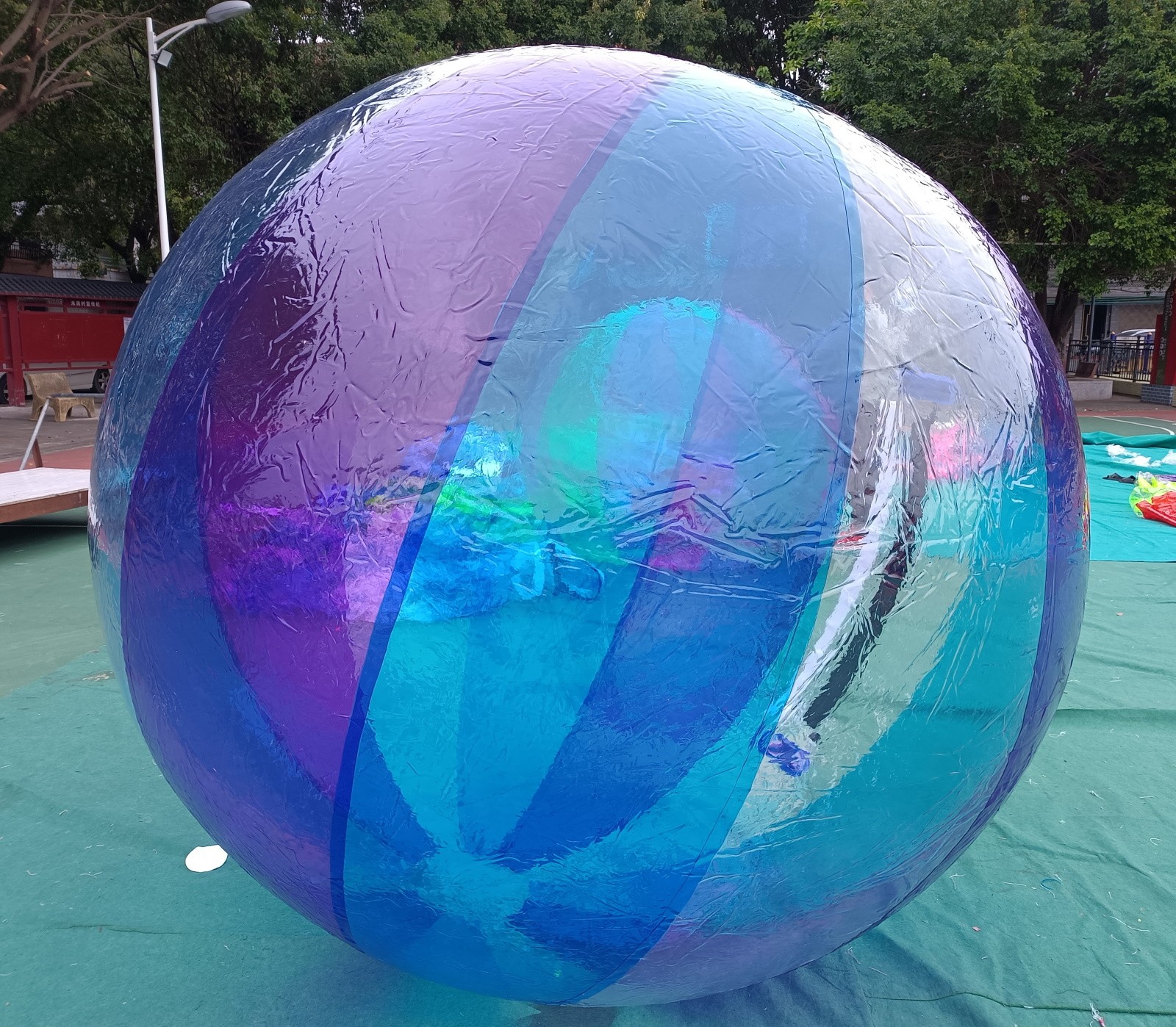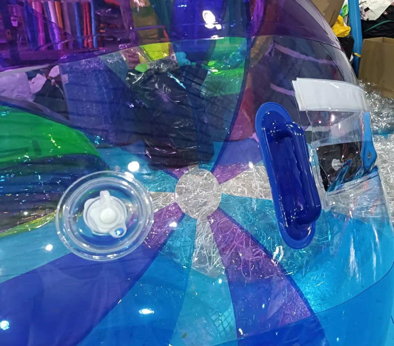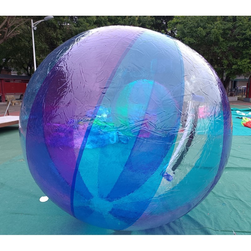 Water Ball de 2 metros de diámetro azul, morado y transparente.