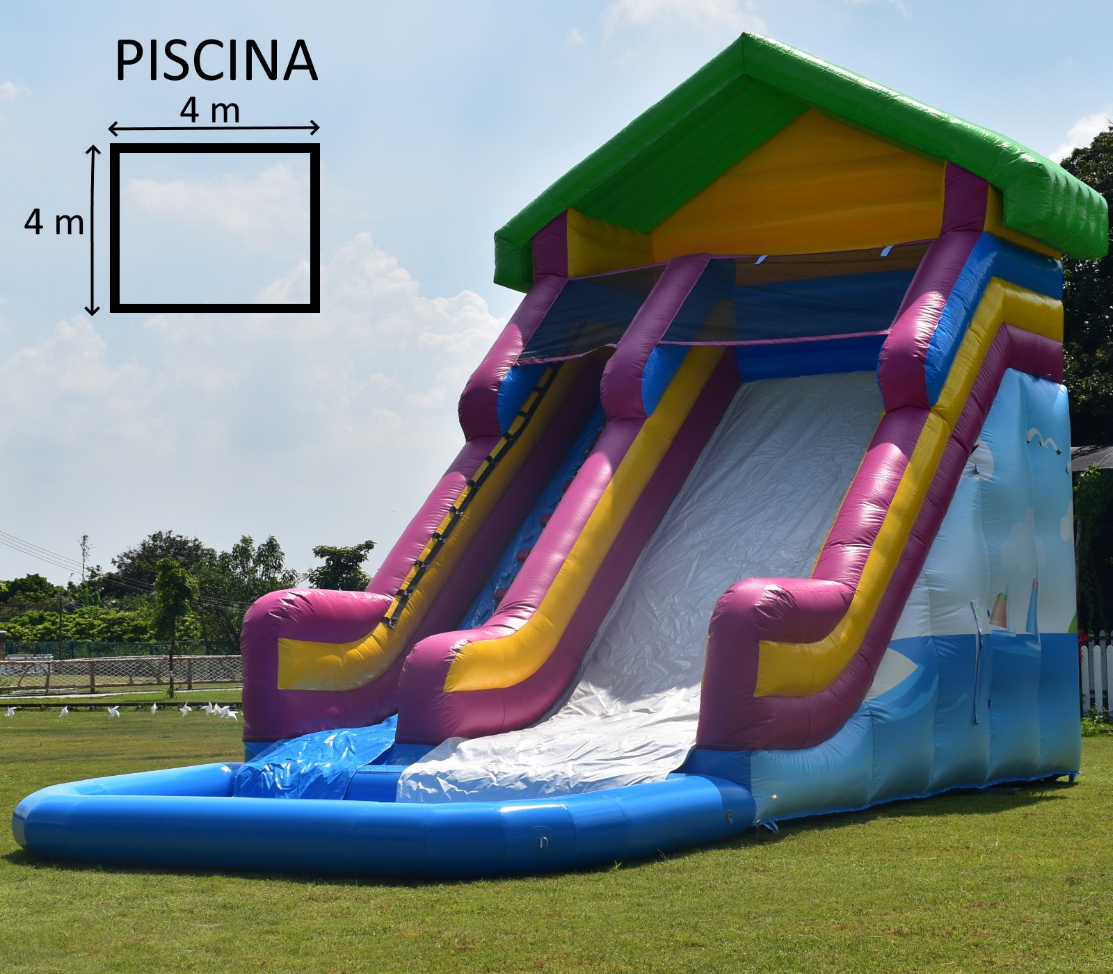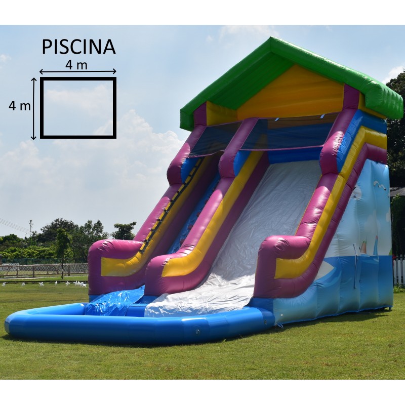 La piscina que incluye este tobogán es más grande a la mostrada en las fotografías del producto y tiene unas dimensiones de 4 x 4 metros.