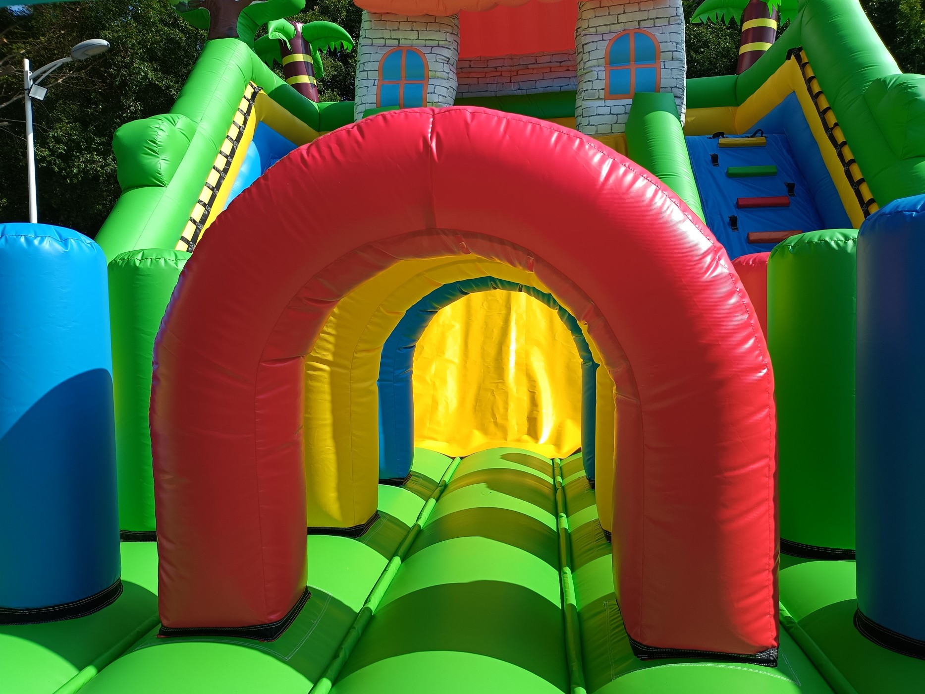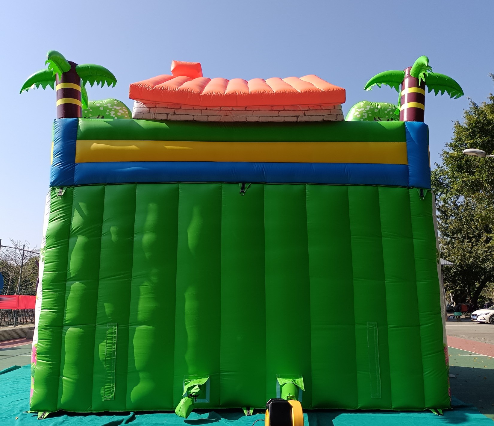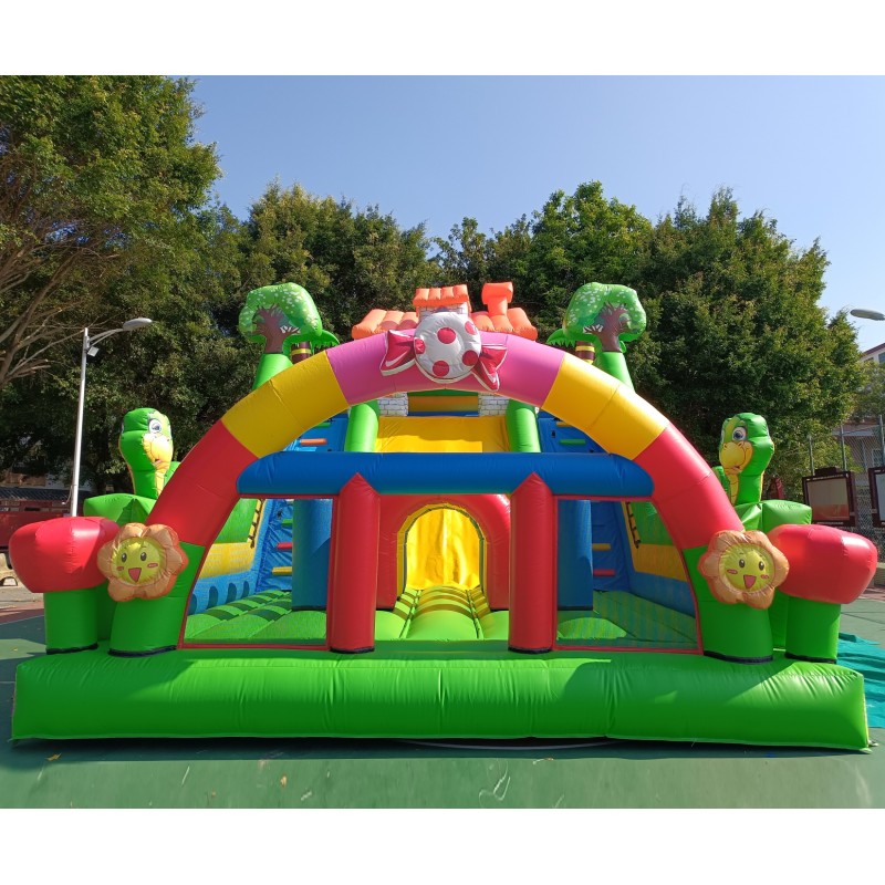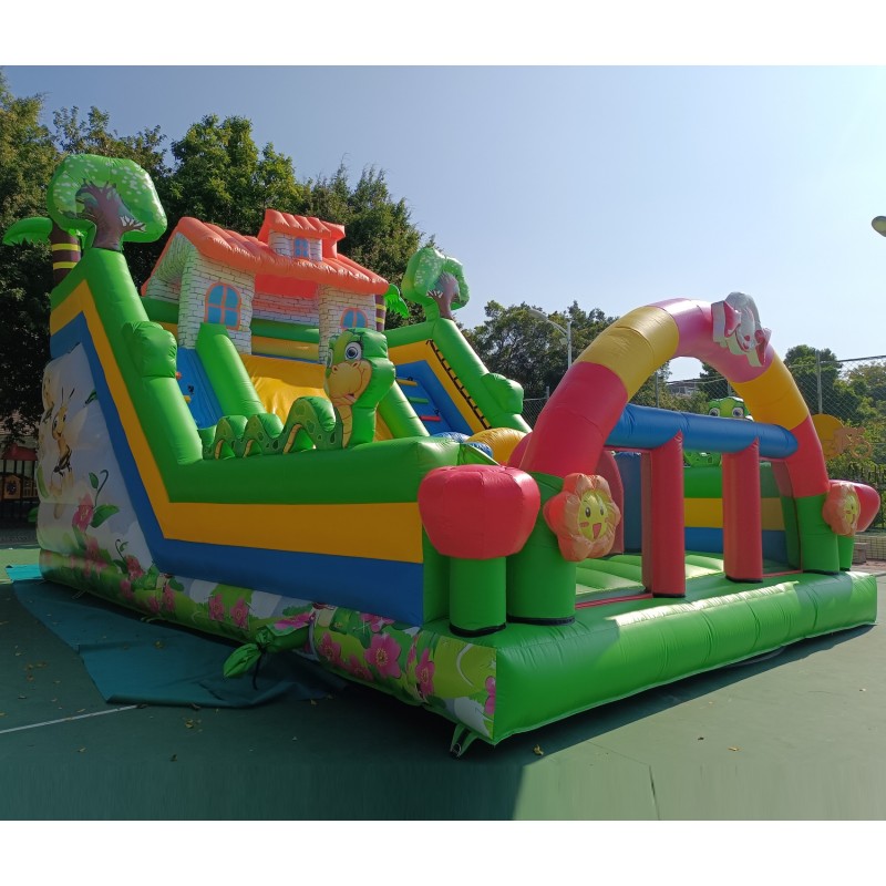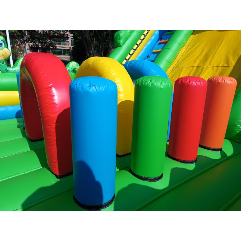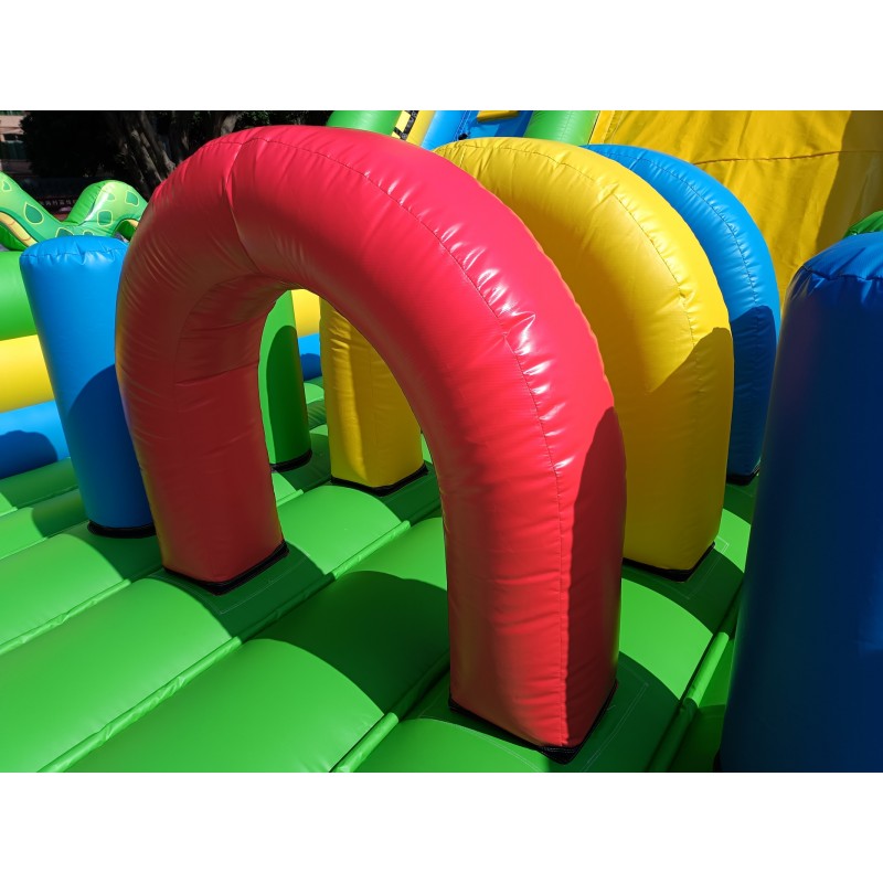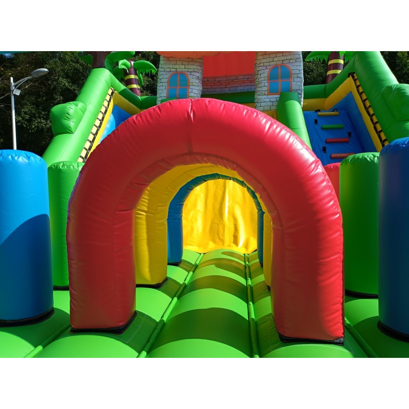 Material: PVC 0.55mm, a prueba de agua y funciones ignífugas. (No usamos material de baja calidad como el tejido Oxford comúnmente utilizado en castillos de uso particular de pequeño tamaño).