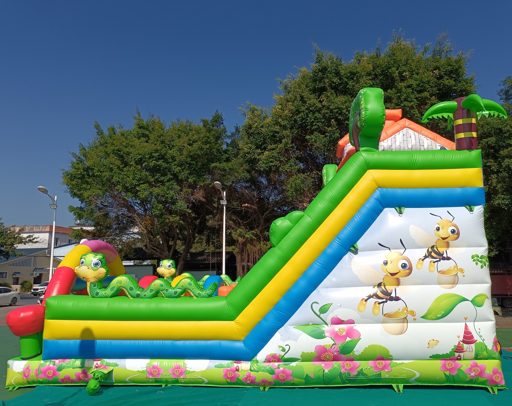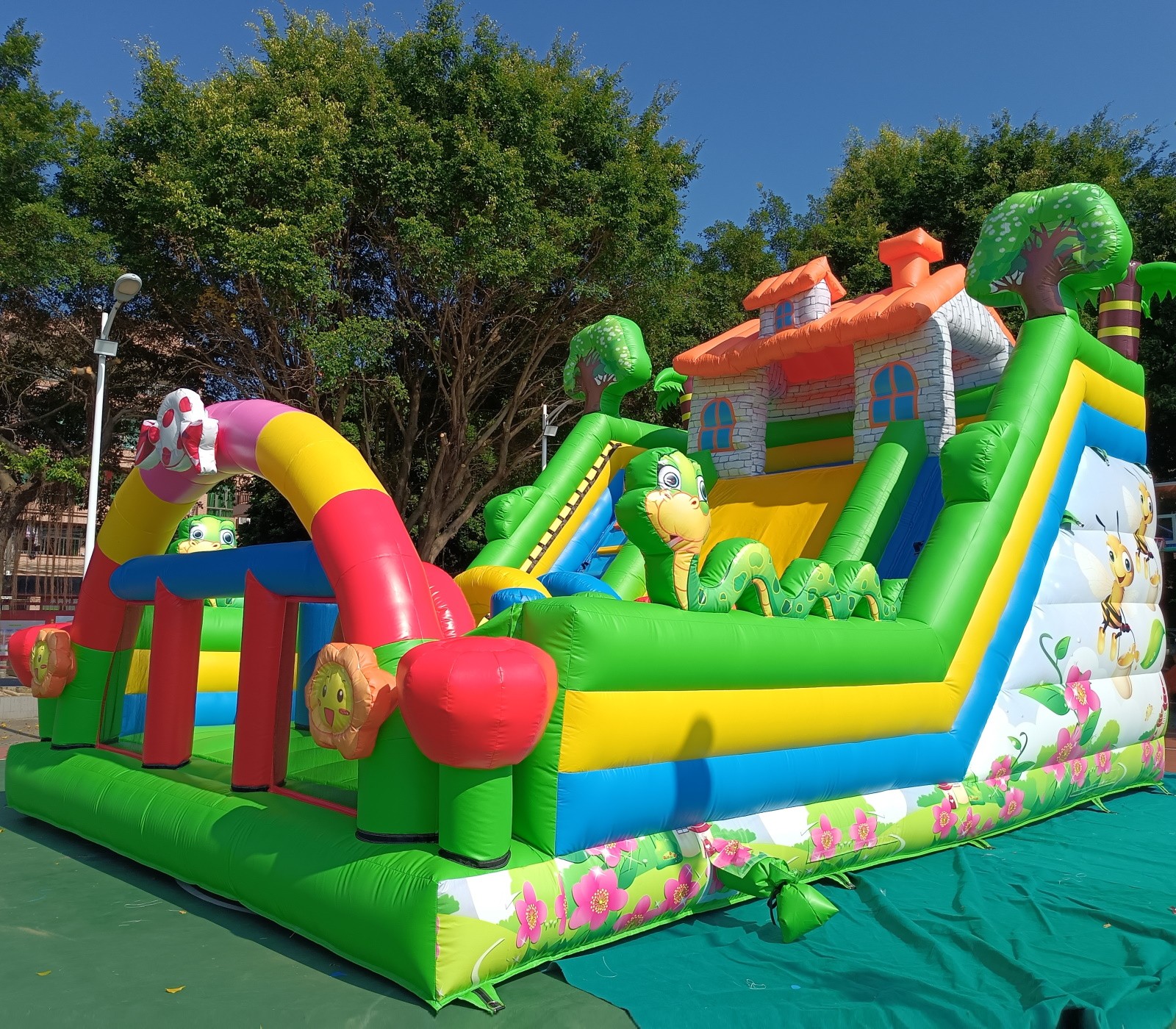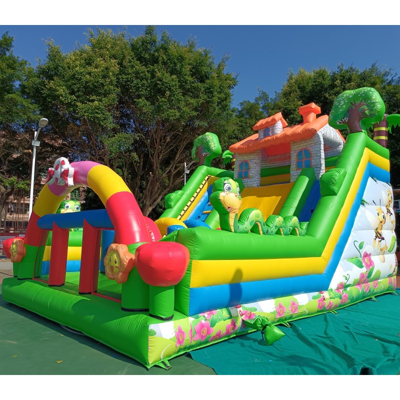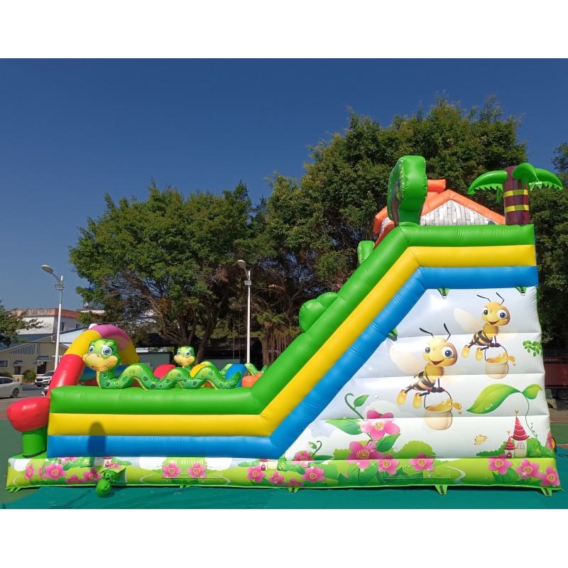 El hinchable cuenta con una serigrafía de alta calidad con dibujos de la primavera, abejas, serpientes, árboles, flores impresos sobre el PVC.