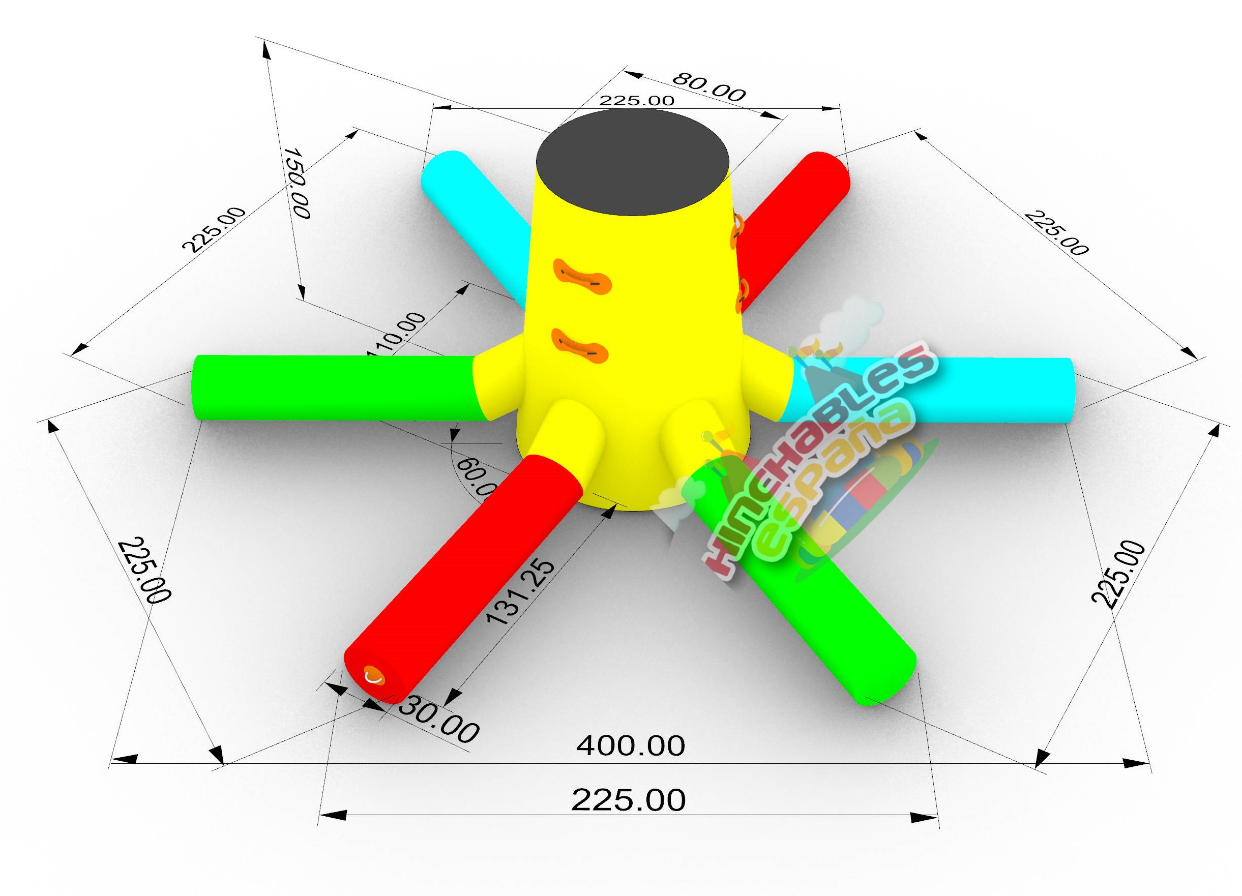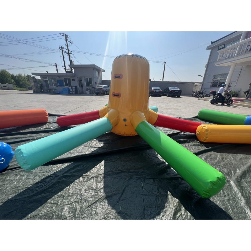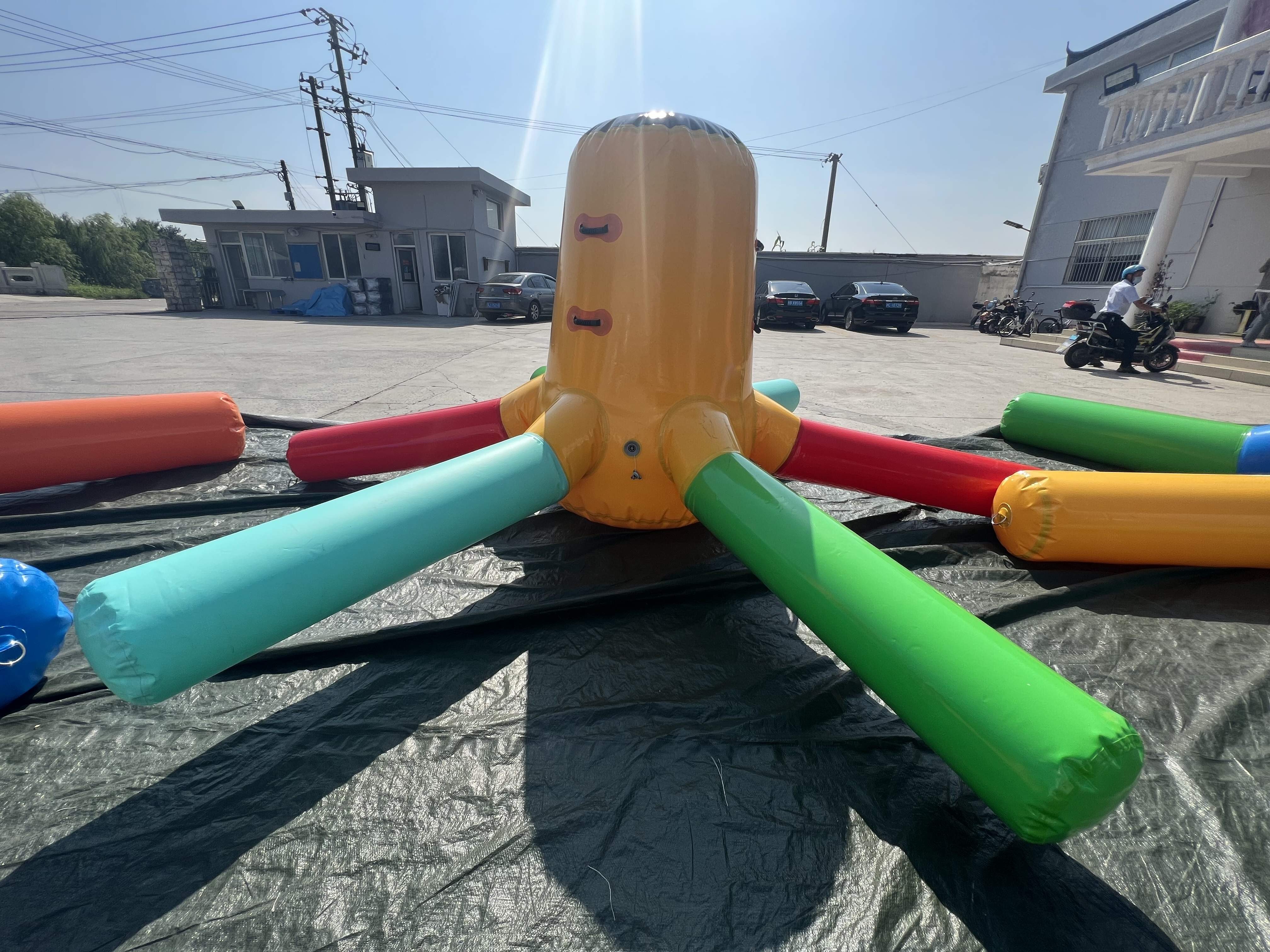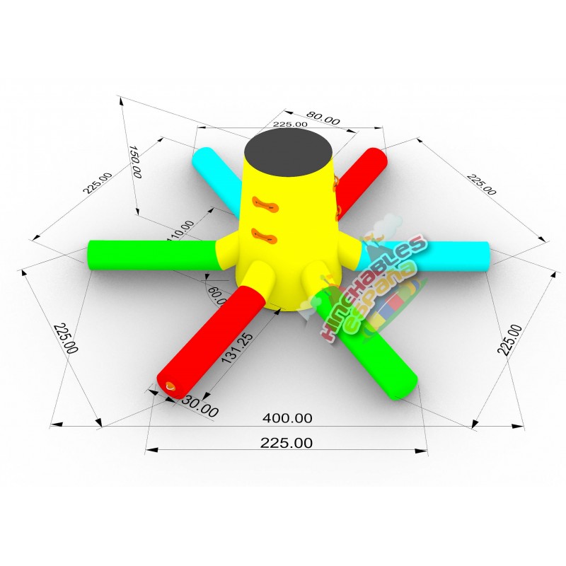 Pulpos hinchables flotantes para usos en piscinas o sobre cualquier superficie acuática. Utilizados como complementos de otros juegos hinchables acuáticos, tales como camas elásticas, pasarelas de carreras, water roller, balancines, etc.