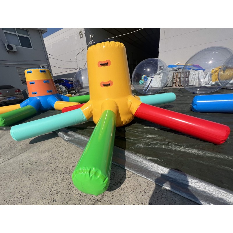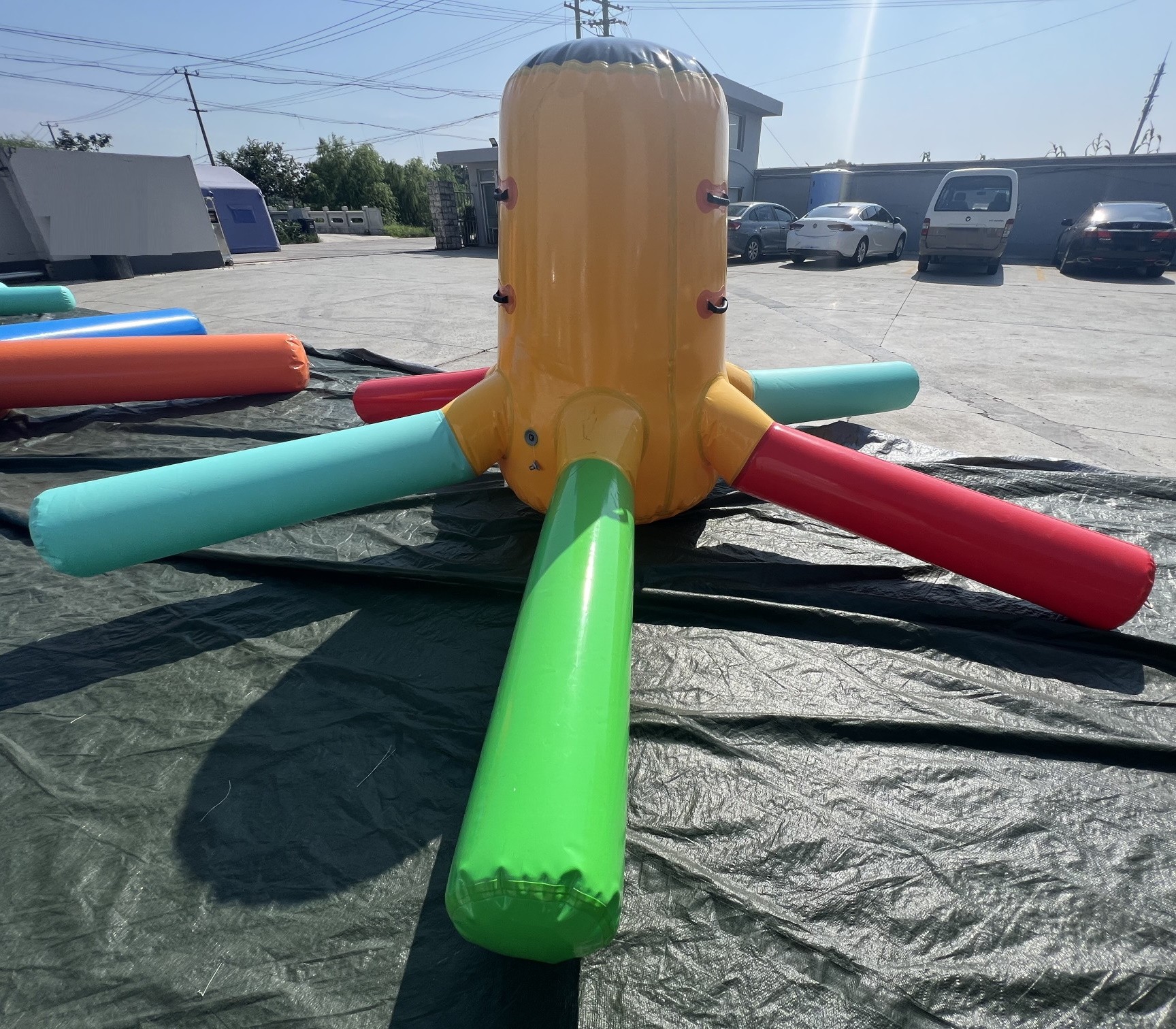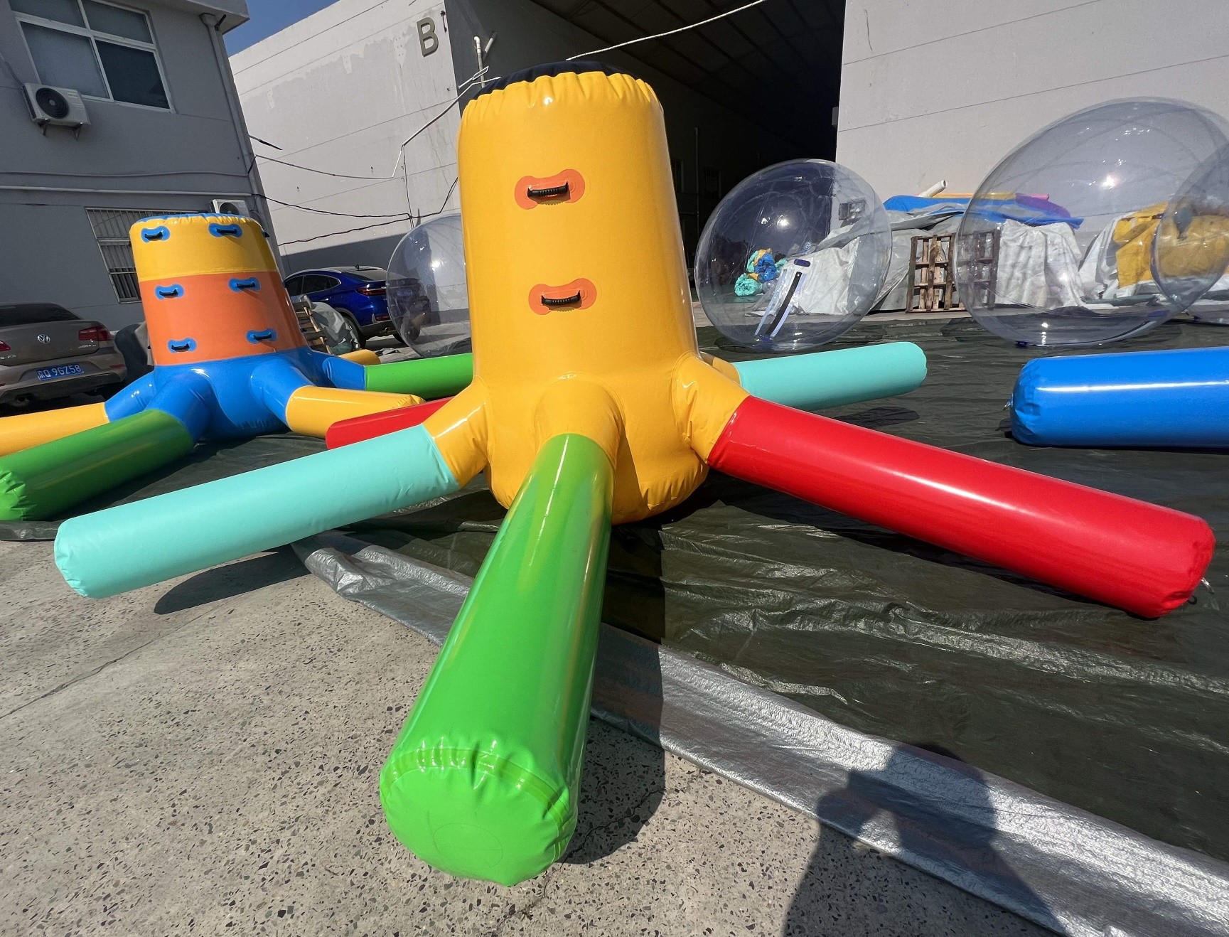 Pulpos hinchables flotantes para usos en piscinas o sobre cualquier superficie acuática. Utilizados como complementos de otros juegos hinchables acuáticos, tales como camas elásticas, pasarelas de carreras, water roller, balancines, etc.