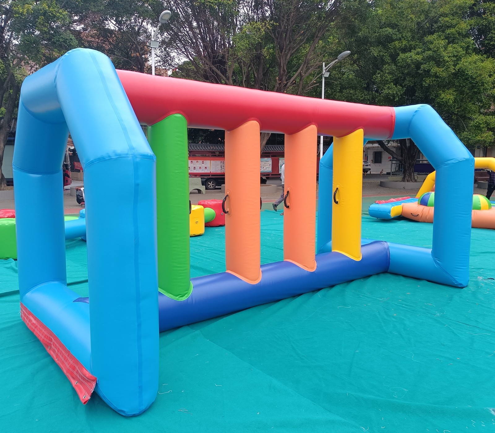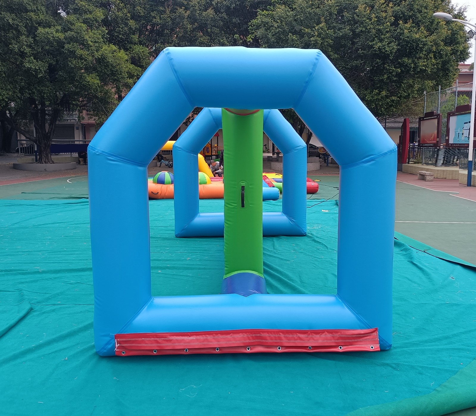 Combinación de hinchables acuáticos para piscinas, especial para combinar con varios módulos o usar individualmente. Puede utilizar el tobogán en combinación con el puente x, puente wipeout, puente arqueado, obstáculos ADN, plataforma inicial de obstáculos, tobogán acuático, camas elásticas, círculos hinchable y pasarelas hinchables de carreras. Cree la mejor combinación para fiesta o evento.