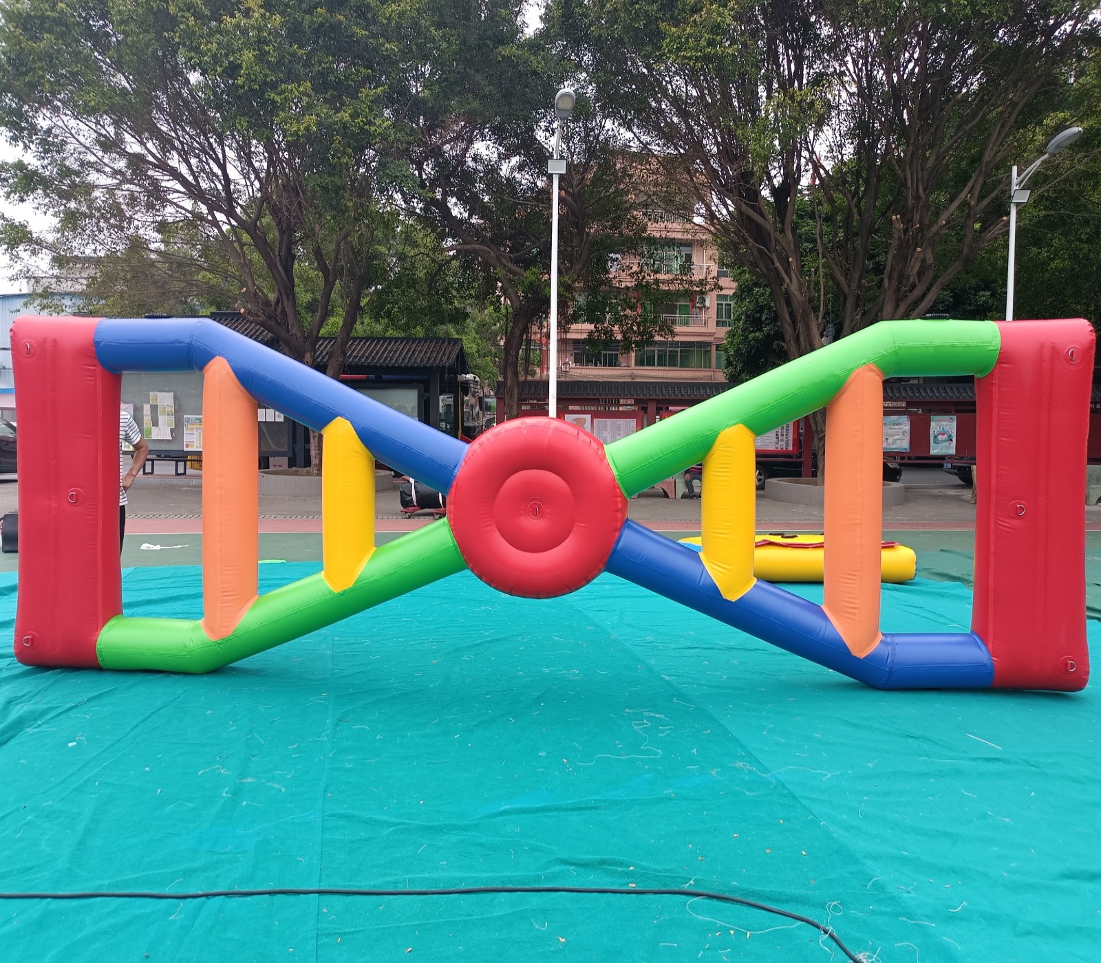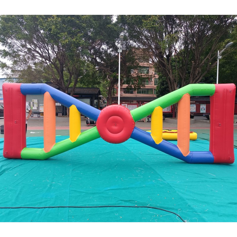 Combinación de hinchables acuáticos para piscinas, especial para combinar con varios módulos o usar individualmente. Puede utilizar el puente x en combinación con el puente horizontal, puente wipeout, puente arqueado, obstáculos ADN, plataforma inicial de obstáculos, tobogán acuático, camas elásticas, círculos hinchable y pasarelas hinchables de carreras. Cree la mejor combinación para fiesta o evento.
