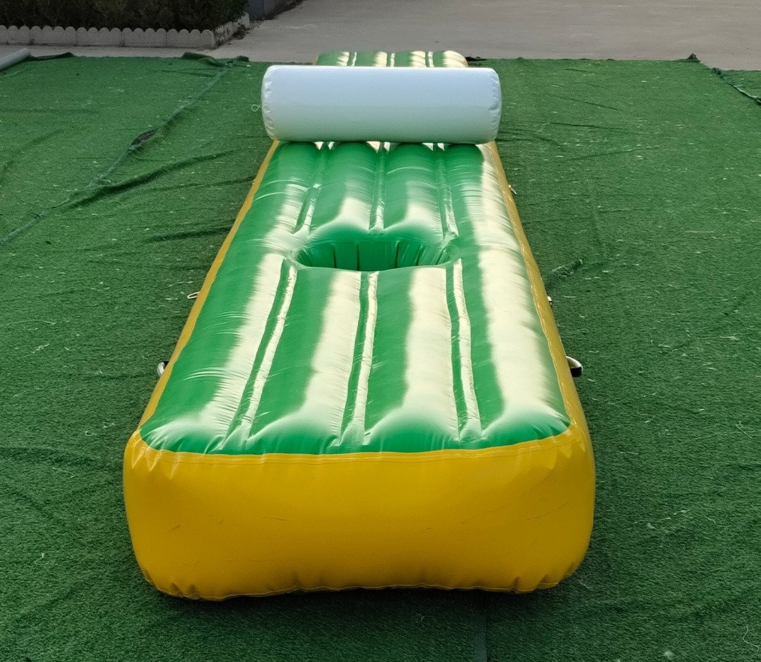Tiene puntos de amarre en los laterales que permiten fijar en una zona de la piscina creando el recorrido deseado, puede utilizarse individualmente o en conjunto con otros obstáculos hinchables, camas elásticas, círculos hinchables, toboganes, etc.
