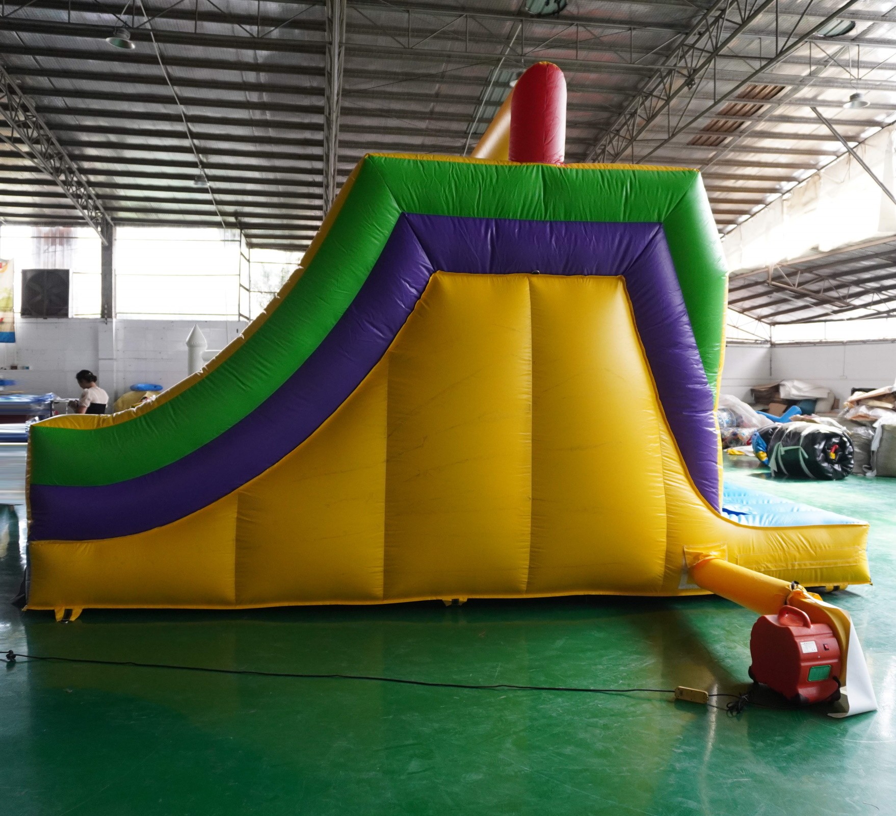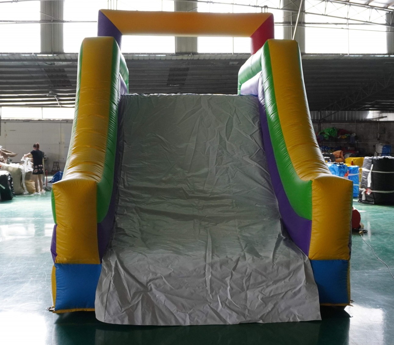 Tobogán hinchable muy colorido con entrada trasera, este tobogán puede ser utilizado con una piscina hinchable o puede ser utilizado en una piscina de obras.
