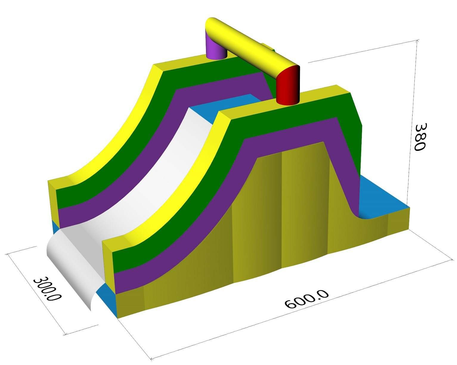 Dimensiones del tobogán: 6 metros de longitud, 3 metros de anchura y 3,8 metros de altura.