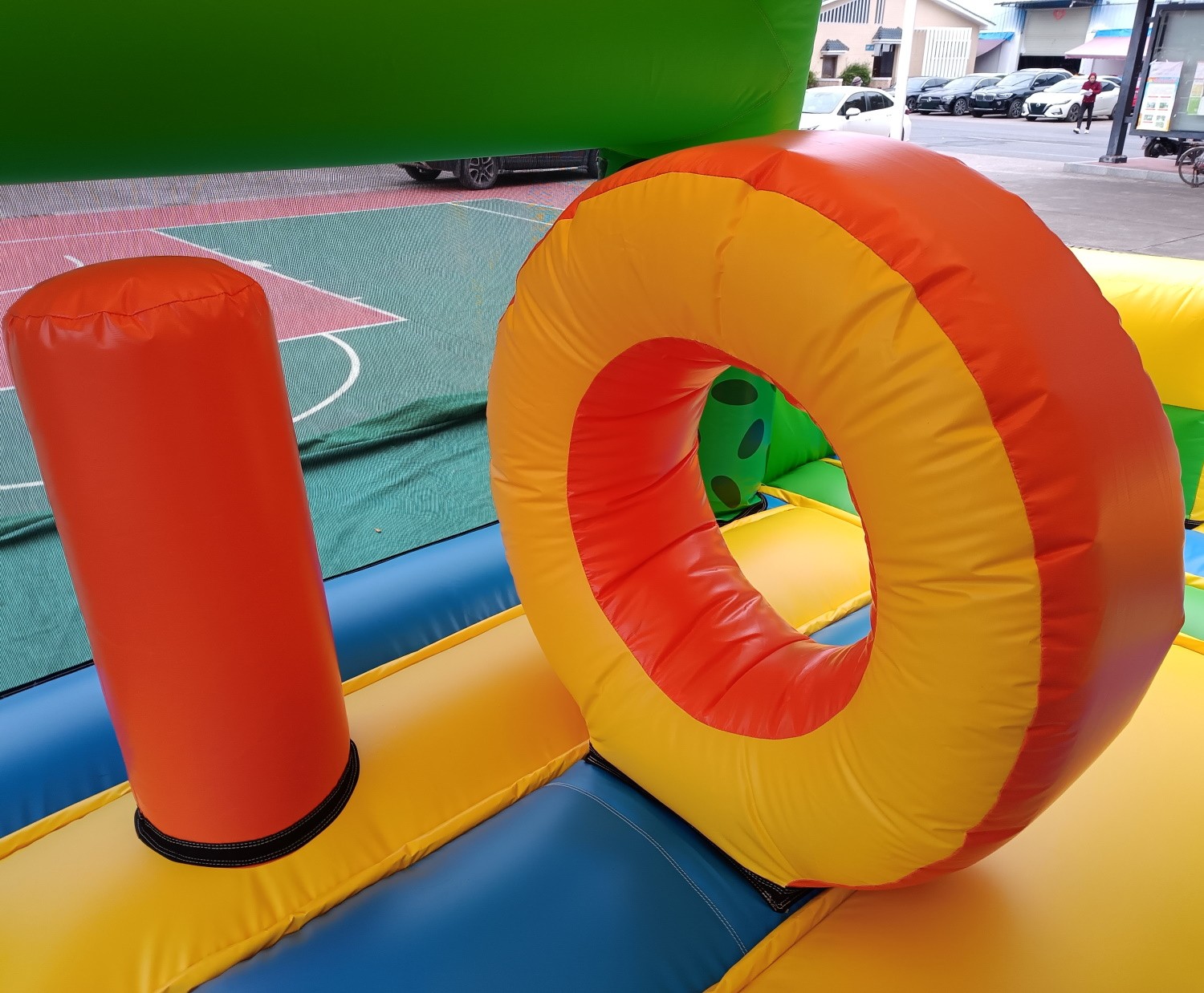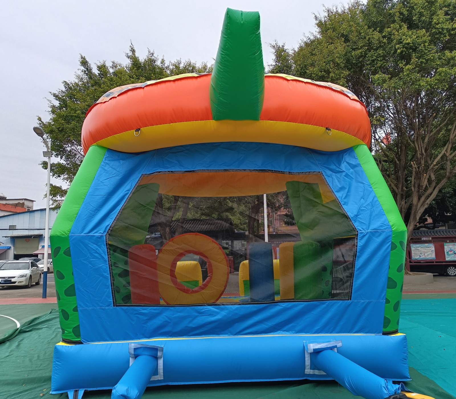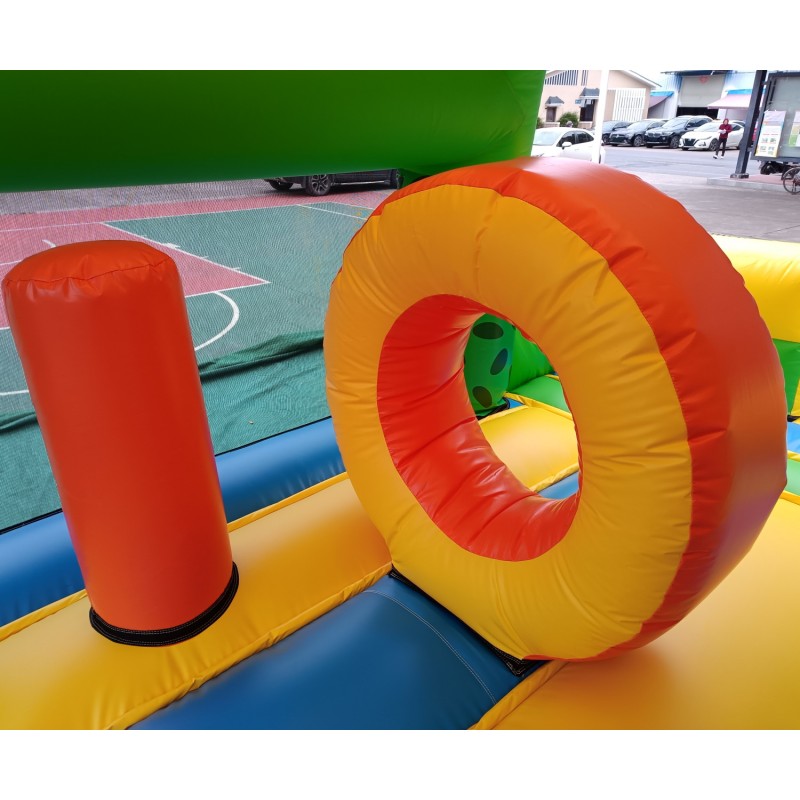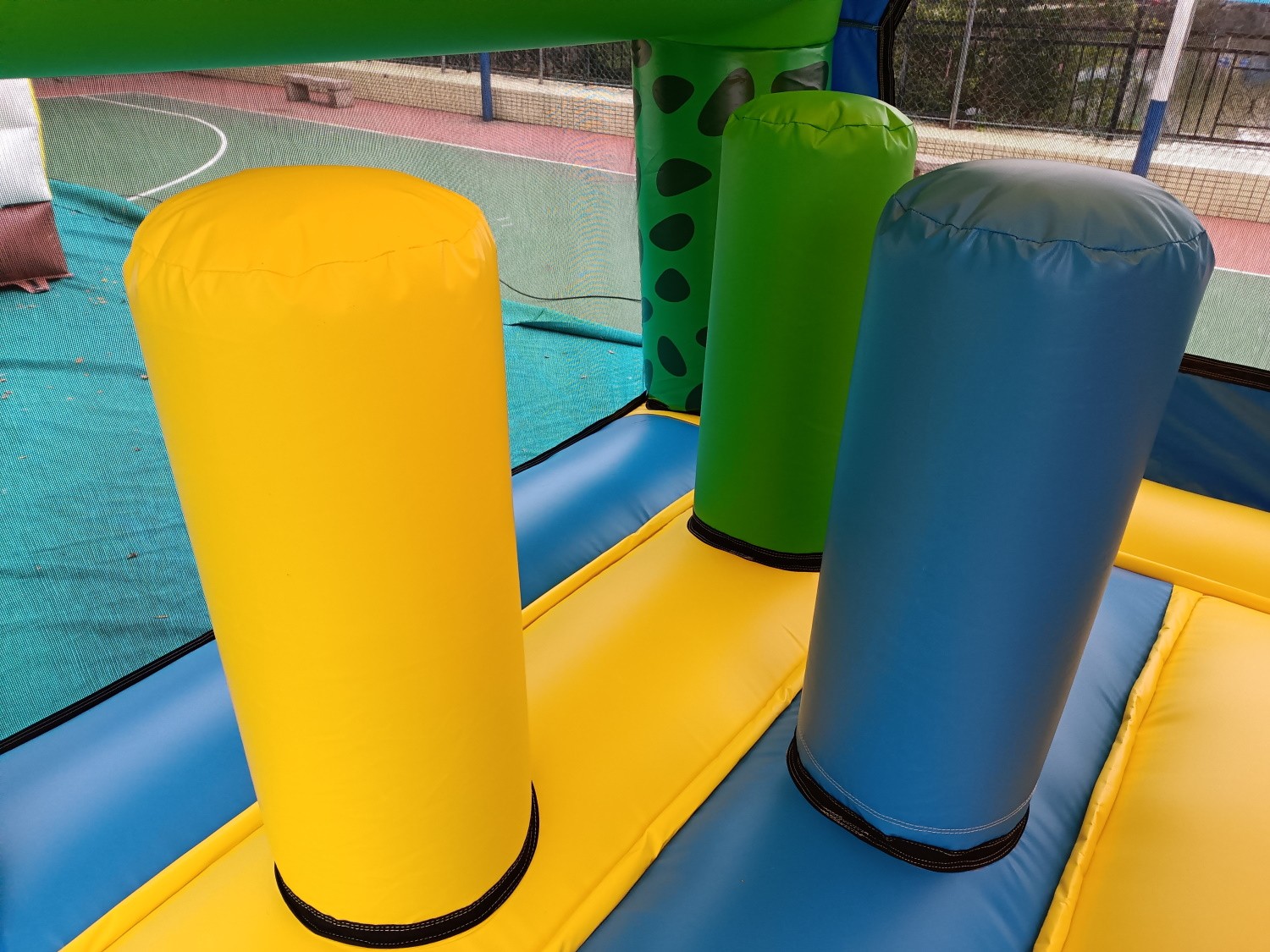 Material: PVC 0.55mm, a prueba de agua y funciones ignífugas. (No usamos material de baja calidad como el tejido Oxford comúnmente utilizado en castillos de uso particular de pequeño tamaño).