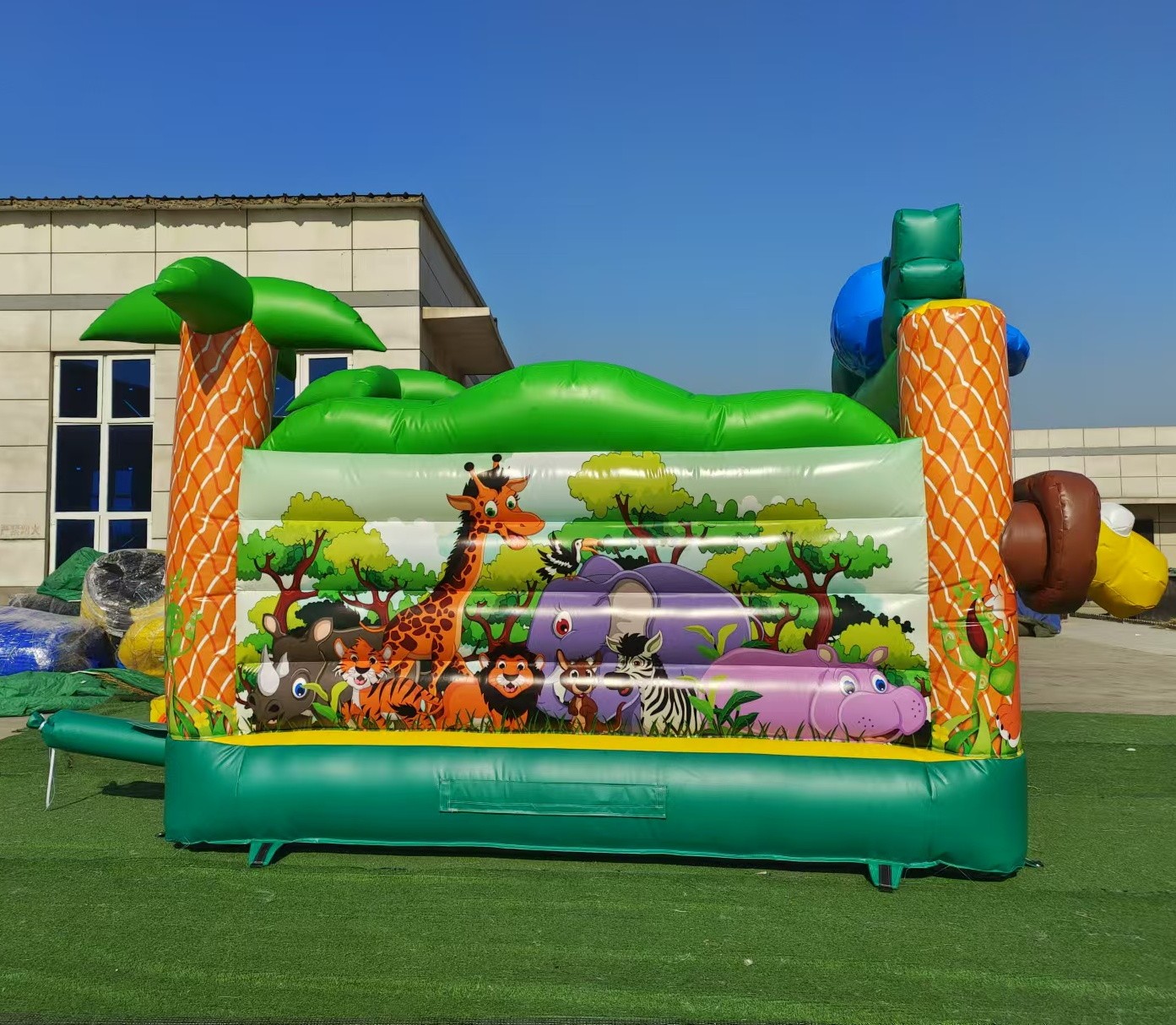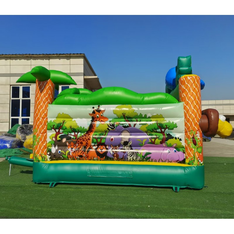 Castillo hinchable Safari park con zona de rebote, juegos y tobogan.