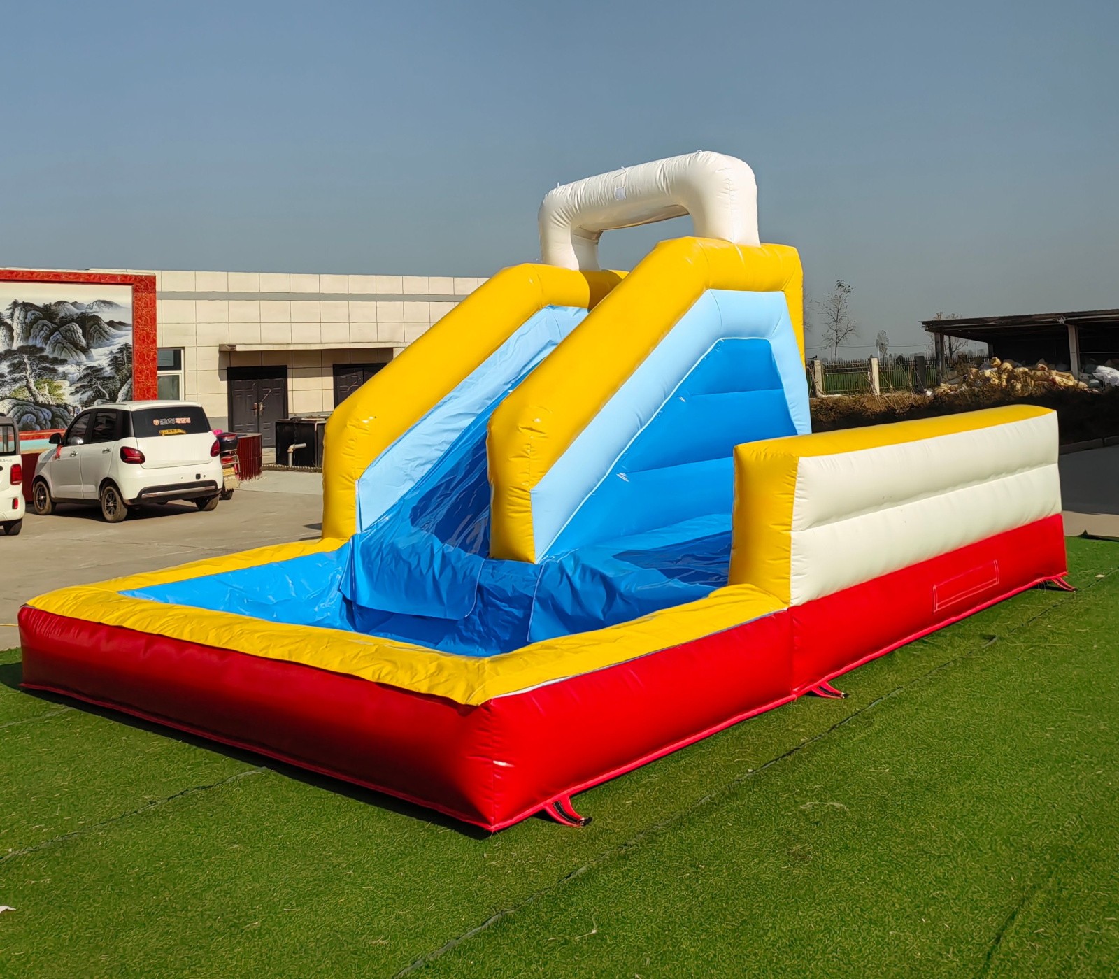 Hinchable 3 en 1, deslizador acuático, tobogán y piscina, todo en un solo hinchable conectado con el mismo soplador de aire.