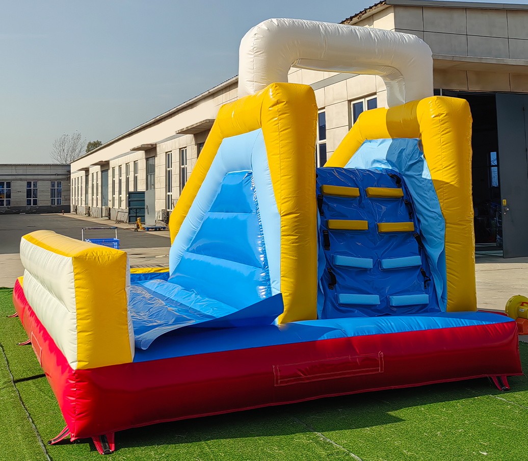Material: lona de PVC de 0.55mm a prueba de agua y funciones ignífugas. (No usamos material de baja calidad como el tejido Oxford comúnmente utilizado en castillos de uso particular de pequeño tamaño).