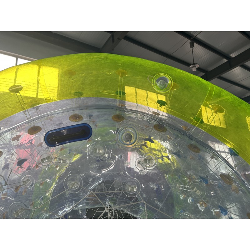 Water Roller de 2 metros color amarillo y transparente con ventosas azules y amarillas.